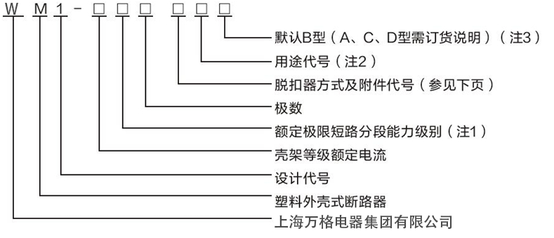 WM1系列塑料外壳式断路器(以下简称断路器),其额定绝缘电压为800V(WM1-63为500V),适用于交流50Hz(或60Hz),额定工作电压690V(WM1-63为400V),额定工作电流至800A的电路中做不频繁转换及电动机不频繁起动之用。断路器具有过载、短路和欠电压保护功能,能保护线路和电源设备不受损失。