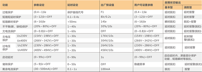 开关具备多种多样电源电路维护功能:启动廷时,断相,三相不平衡,欠电流量,过压、欠工作电压等;